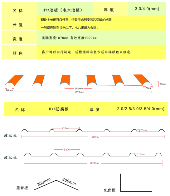 一、HYK浪板產(chǎn)品規(guī)格及板型: